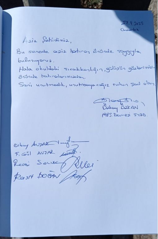27 Eylül 2024, Cumartesi Şehit Kardeşimiz P.Ütğm. Naci DOĞAN'ı Kardeşi Raşit DOĞAN ve Devre Arkadaşlarımızın katılımıyla kabrinin bulunduğu Çorum Üçköy Mezarlığı'nda andık...