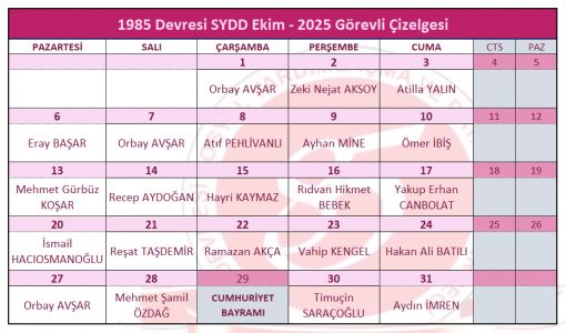 EKİM - 2025 DERNEK GÖREVLİ ÇİZELGESİ
