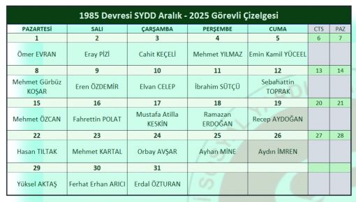 ARALIK - 2025 DERNEK GÖREVLİ ÇİZELGESİ